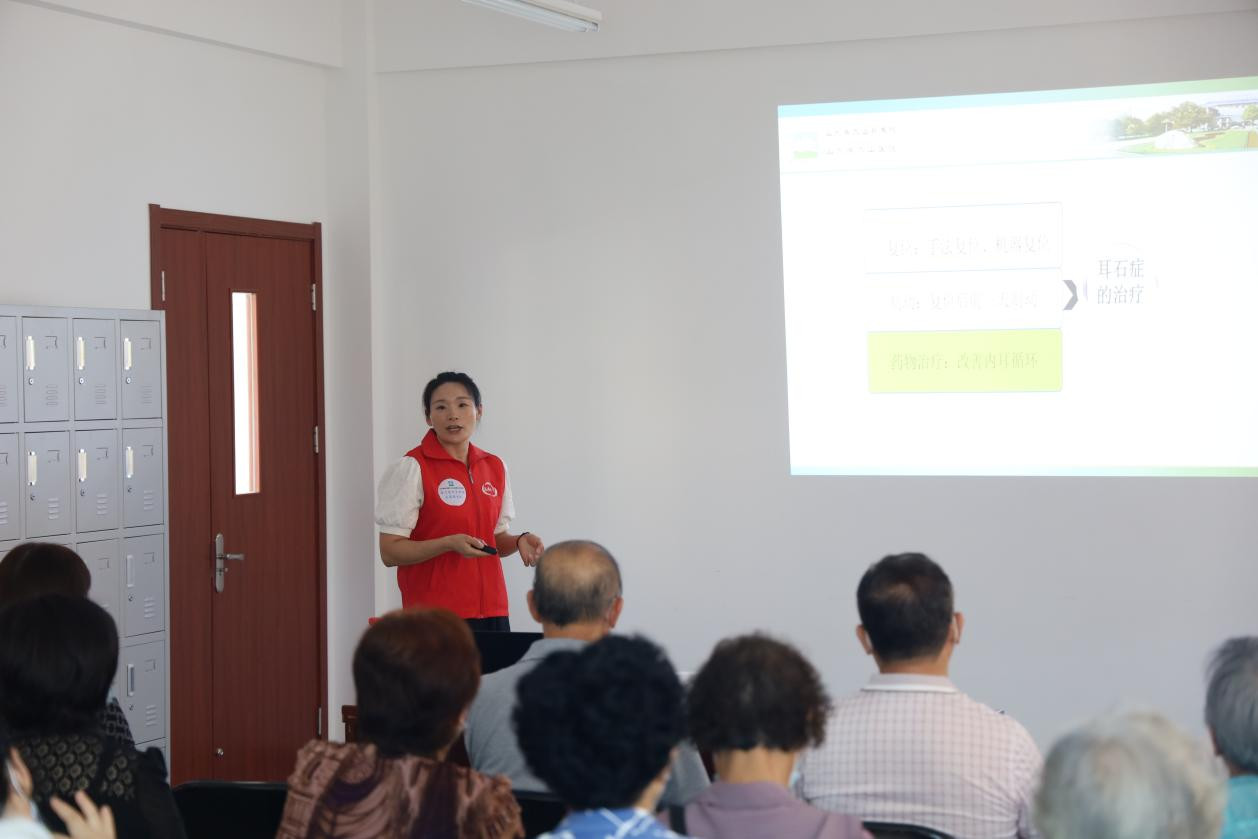 医院“康乃馨”老年志愿服务队成员胡海丽、纪文秋分别以《“眩晕”之多少》和《笑做“不倒翁”》为题进行了精彩的健康科普讲座,赢得老同志们一致赞许。