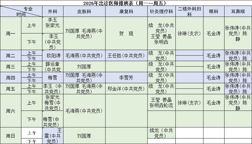 2026年门诊值班表