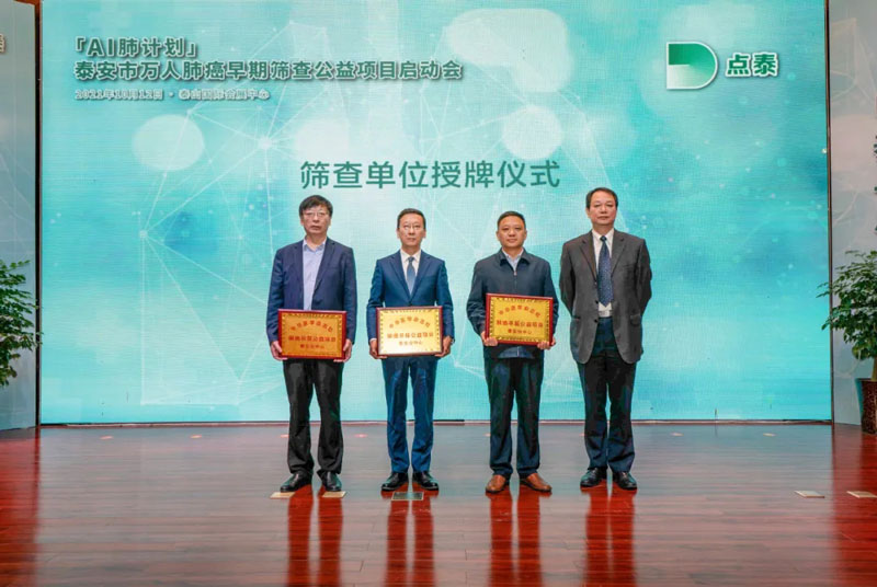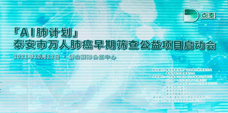 10月12日上午,“AI肺计划”泰安市万人肺癌早期筛查公益活动启动。泰安市副市长袁久党,卫健委党组书记、主任张步军,高新区党工委书记、管委会主任刘斌,泰安万人筛查专家中华肺癌学院院长、上海胸科医院呼吸科主任韩宝惠教授,泰安万人筛查专家、朝阳医院胸外科主任医师李辉教授,项目执行方点泰(泰安)科技有限公司负责人以及项目合作方各医院主要领导参加了启动仪式。