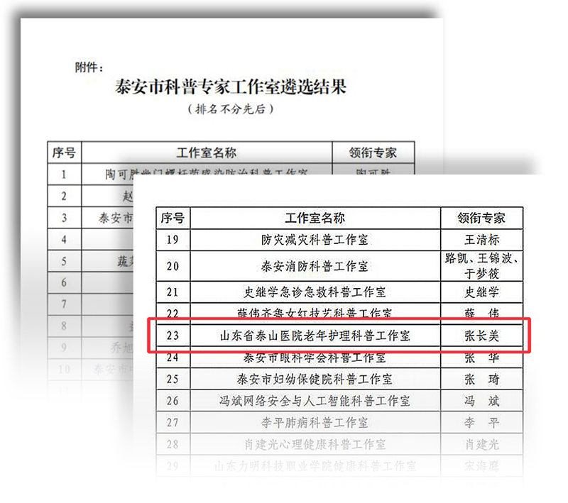 【喜报】“ 山东省泰山医院老年护理科普工作室 ” 成功入选泰安市科普专家工作室