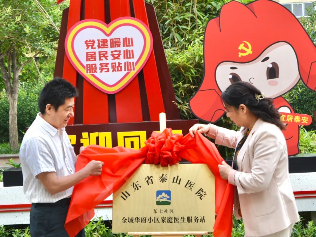 为深入贯彻落实省卫生健康委《“四送四进四提升”健康促进行动方案》以及《山东省推进家庭医生服务“六个拓展”“三个延伸”实施方案》要求,推动优质医疗资源下沉到群众身边,进一步发挥家庭医生作为居民健康“守门人”的作用,5月26日上午,山东省泰山医院与东七社区金域华府小区联合打造的家庭医生服务站正式揭牌启用。 山东省泰山医院党委副书记贺伟表示,近期,省卫生健康委相继出台文件,鼓励家庭医生服务由基层医疗机构向二三级医院拓展,山东省泰山医院作为省属三级公立医院,积极响应上级号召,在金域华府小区成立家庭医生服务站,定期派专家到社区坐诊,将省级优质医疗资源下沉到基层,为居民健康保驾护航。