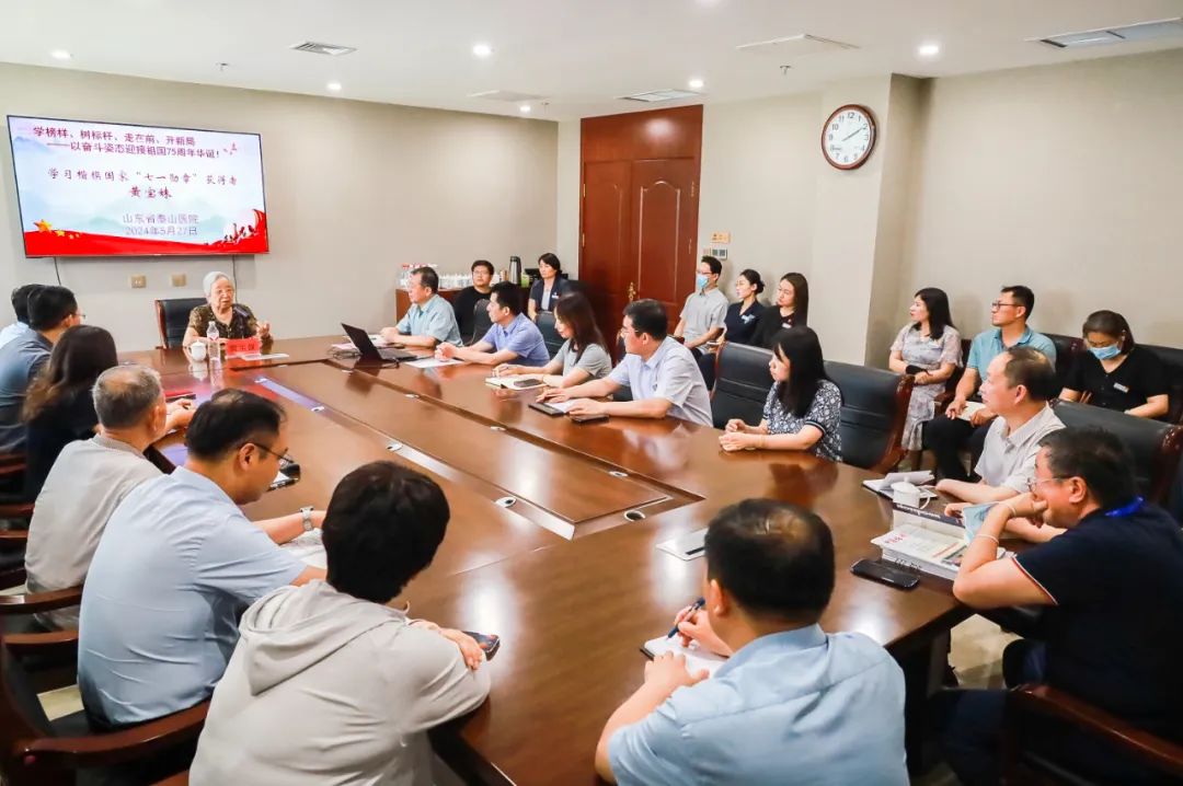 为充分发挥先进模范人物的精神引领、典型示范作用,引导医院广大干部职工坚定理想信念、赓续奋斗初心,5月27日,山东省泰山医院举办“学习好榜样——党的八大代表、全国劳动模范、‘七一勋章’获得者黄宝妹”报告会。黄宝妹,作为国家发展的见证者、参与者、奉献者,是新中国第一批劳模,受到毛泽东、周恩来等老一辈党和国家领导人的亲切接见;2021年6月29日,习近平总书记亲自授予黄宝妹“七一勋章”。医院领导班子成员,各党支部书记以及部分行政、临床科室职工,青年代表参加了本次会议。