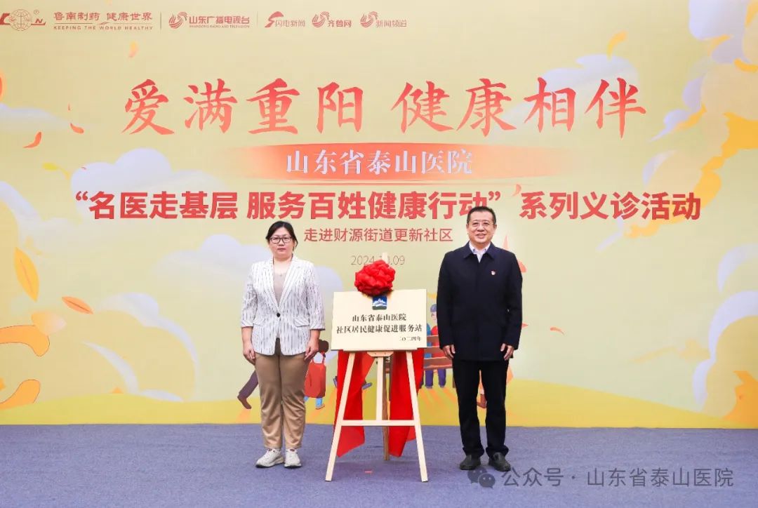 毛军胜、苏媛媛共同为山东省泰山医院社区居民健康促进服务站揭牌